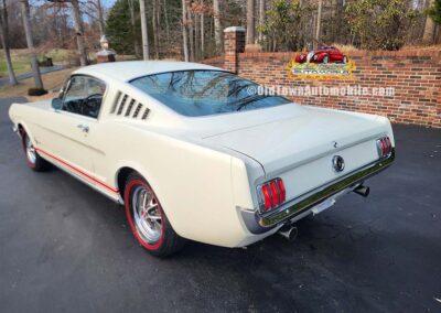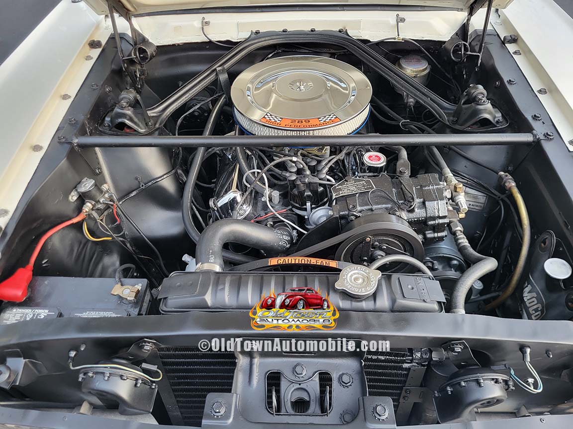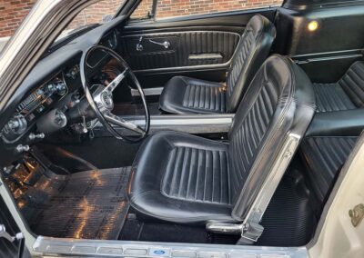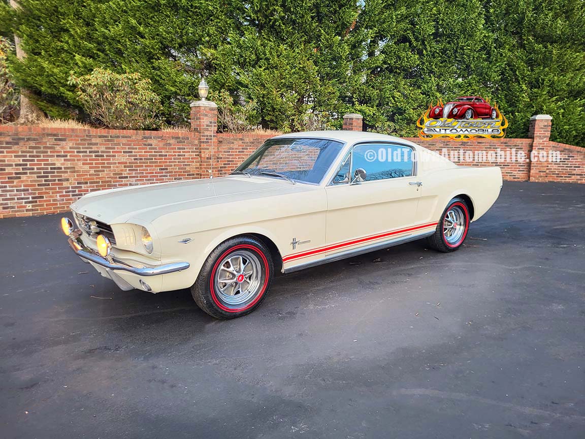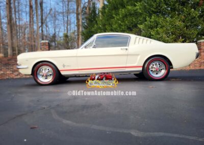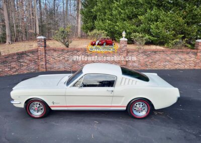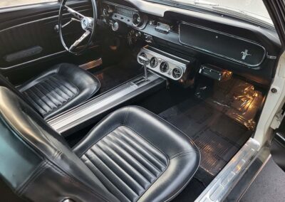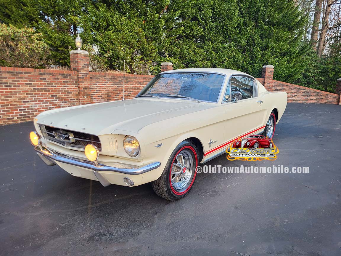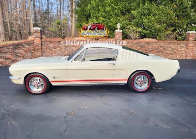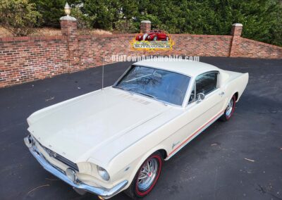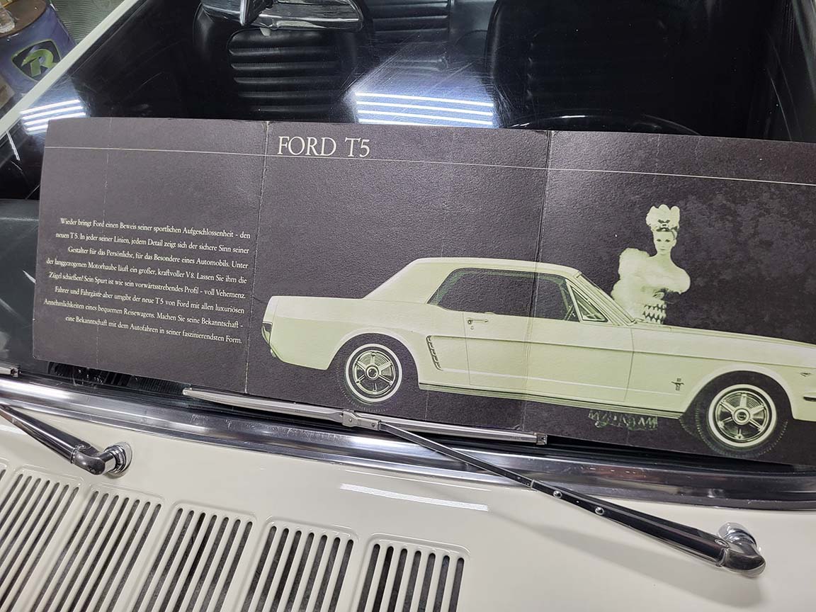 Description: Rare export model. These T5 cars were built in the U.S. without Mustang badging and then exported to Germany. This Fastback in original Wimbledon White has a straight rust-free body and floors, smooth-running 289 V8 engine with 4-barrel carb. C4 automatic transmission, 3.00:1 gear ratio, GT dual exhaust, power steering, factory disc brakes, styled steel wheels with double redline radial tires, nice stock interior with console, Rally Pack tachometer and clock, 8-track player, and cold air conditioning. Fully serviced and runs and drives great.