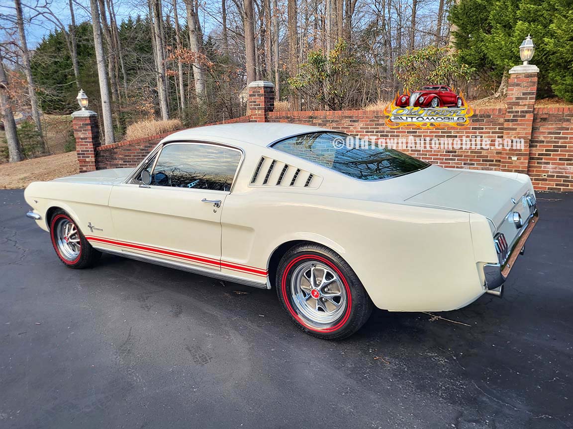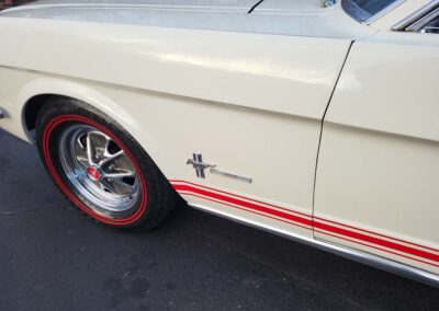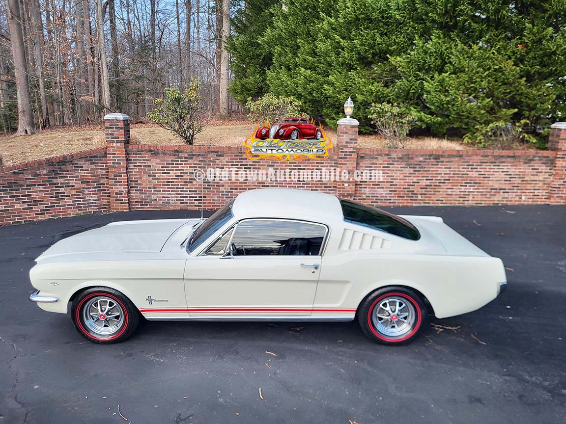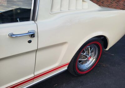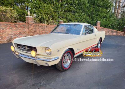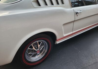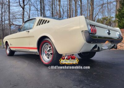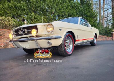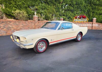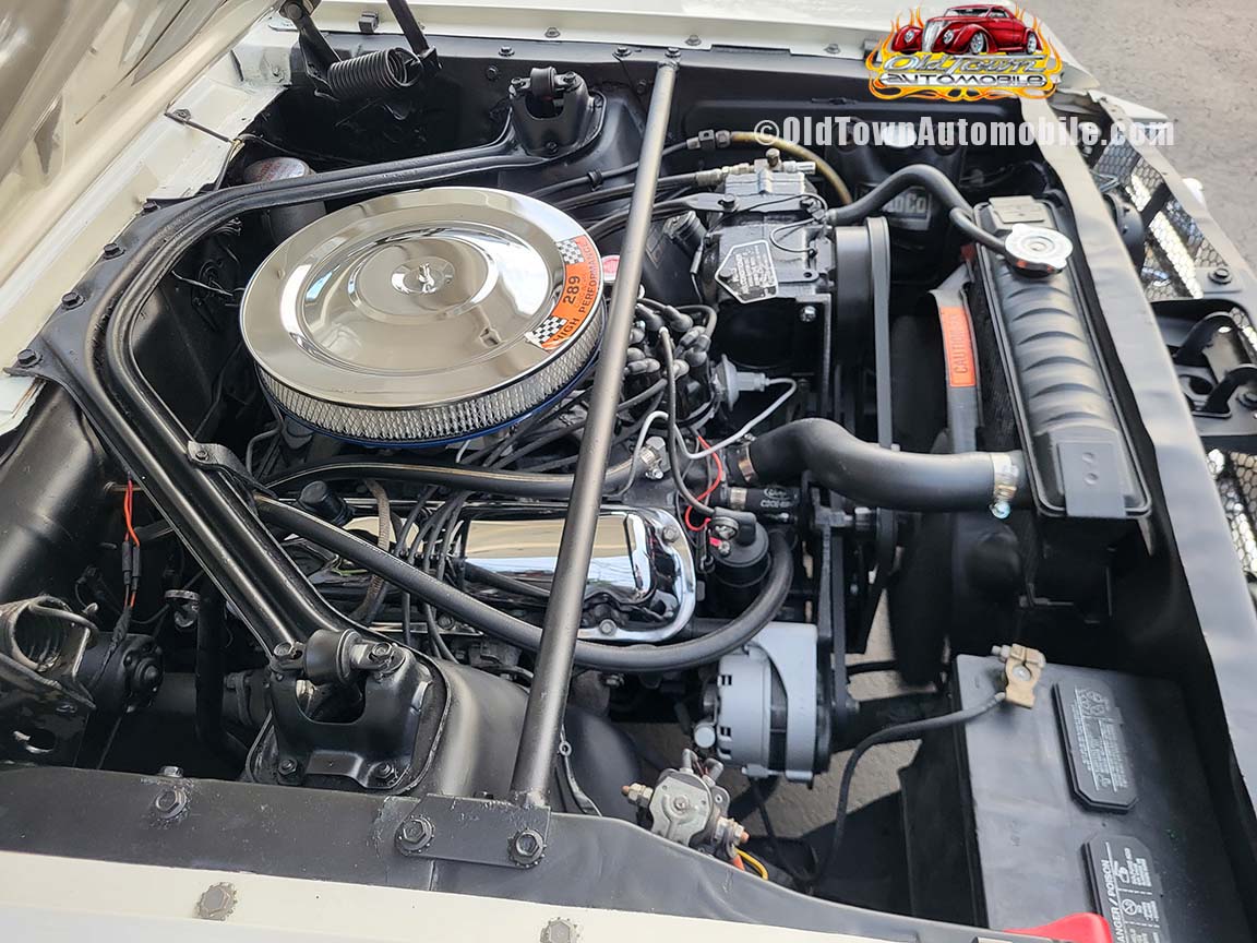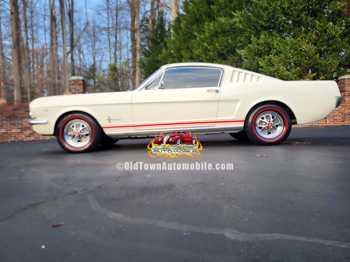 Description: Rare export model. These T5 cars were built in the U.S. without Mustang badging and then exported to Germany. This Fastback in original Wimbledon White has a straight rust-free body and floors, smooth-running 289 V8 engine with 4-barrel carb. C4 automatic transmission, 3.00:1 gear ratio, GT dual exhaust, power steering, factory disc brakes, styled steel wheels with double redline radial tires, nice stock interior with console, Rally Pack tachometer and clock, 8-track player, and cold air conditioning. Fully serviced and runs and drives great.