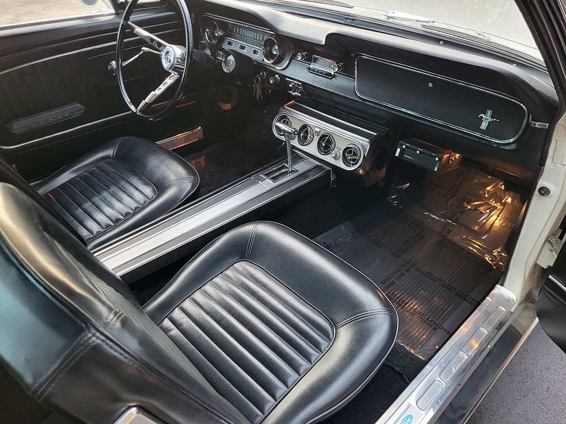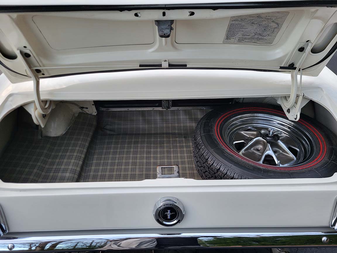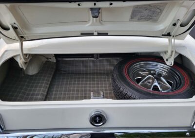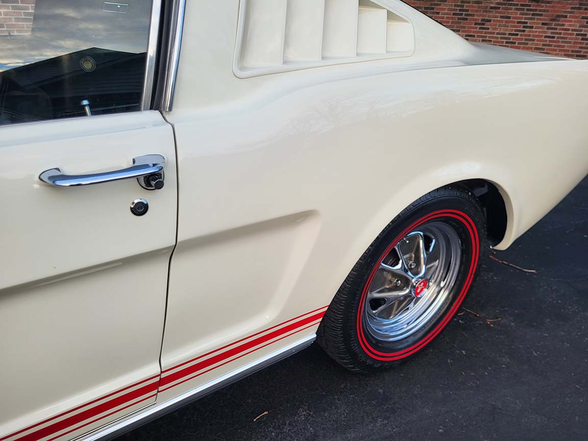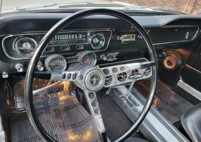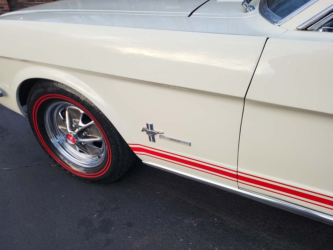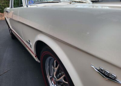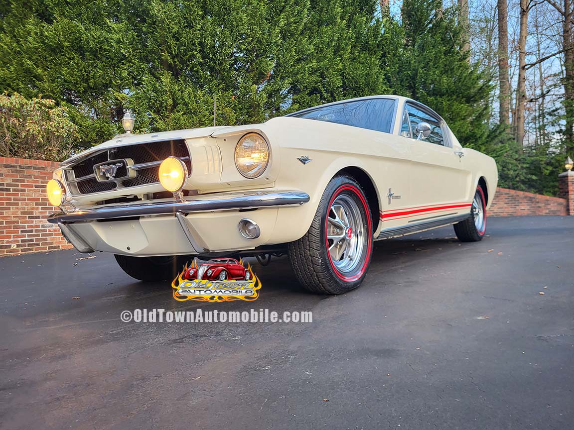 Description: Rare export model. These T5 cars were built in the U.S. without Mustang badging and then exported to Germany. This Fastback in original Wimbledon White has a straight rust-free body and floors, smooth-running 289 V8 engine with 4-barrel carb. C4 automatic transmission, 3.00:1 gear ratio, GT dual exhaust, power steering, factory disc brakes, styled steel wheels with double redline radial tires, nice stock interior with console, Rally Pack tachometer and clock, 8-track player, and cold air conditioning. Fully serviced and runs and drives great.