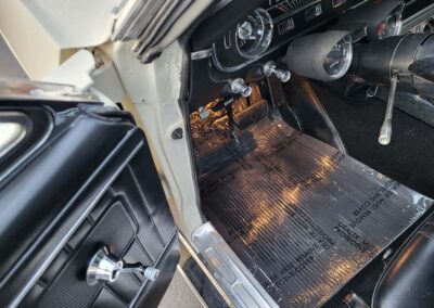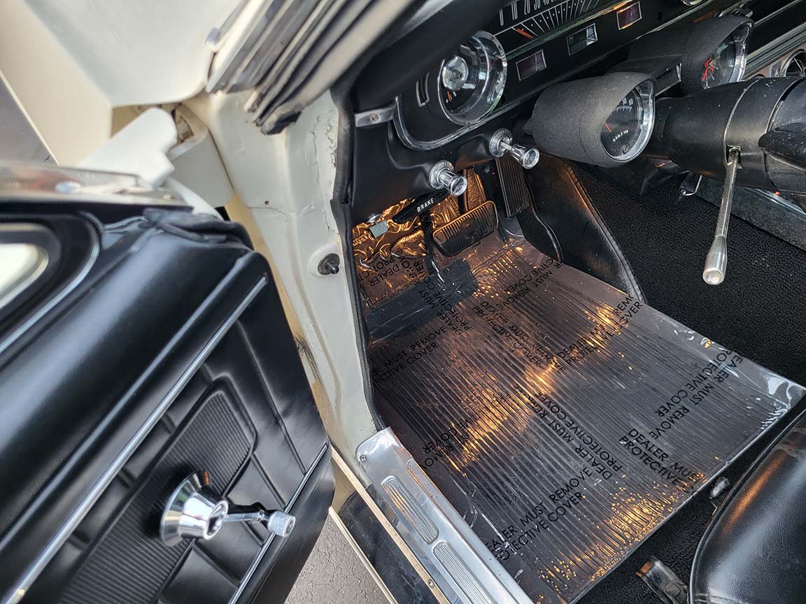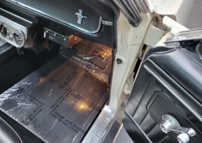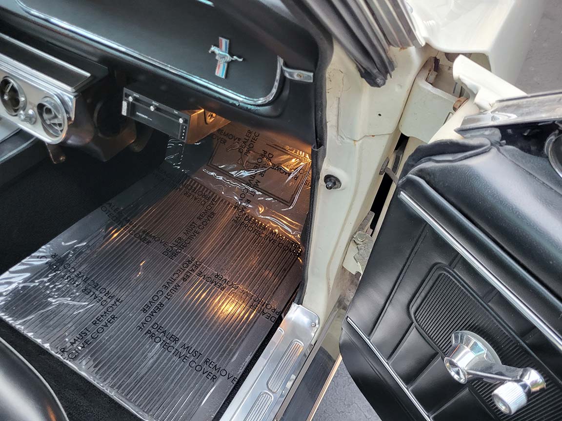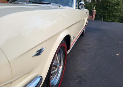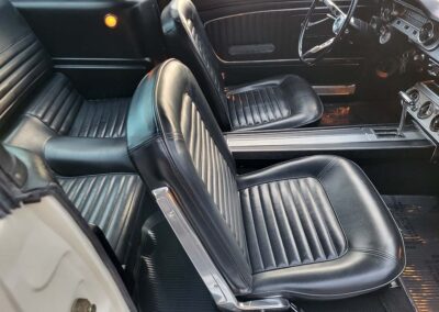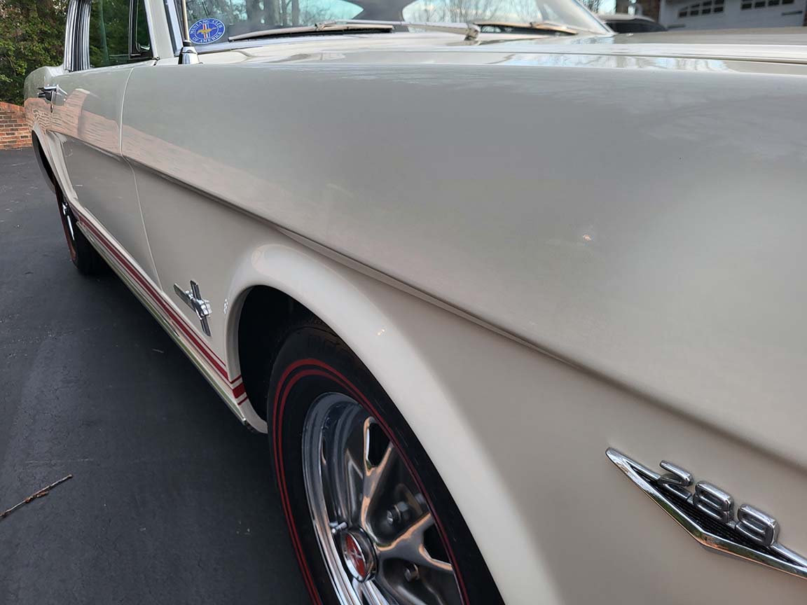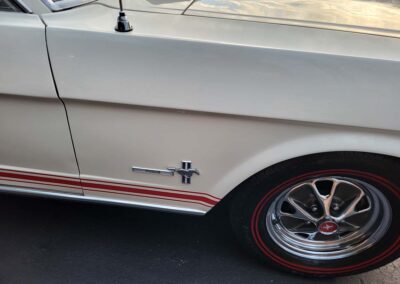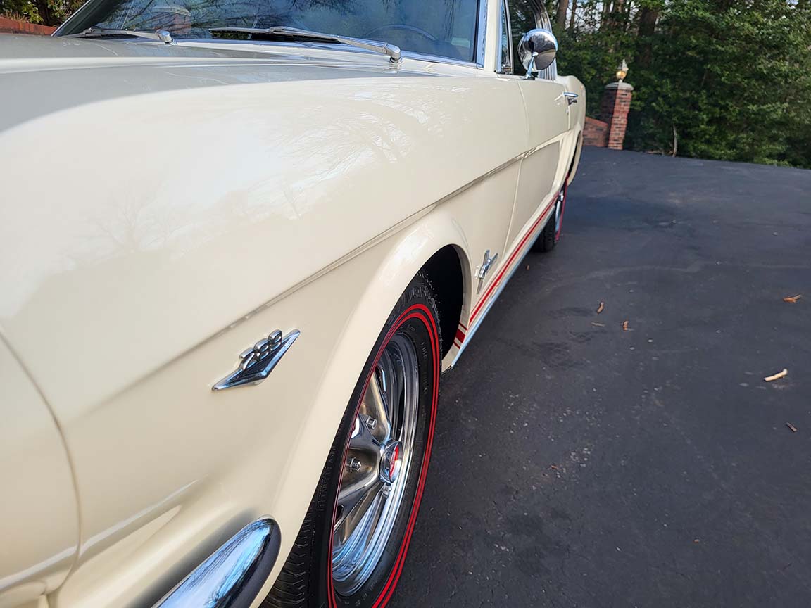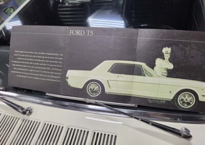 Description: Rare export model. These T5 cars were built in the U.S. without Mustang badging and then exported to Germany. This Fastback in original Wimbledon White has a straight rust-free body and floors, smooth-running 289 V8 engine with 4-barrel carb. C4 automatic transmission, 3.00:1 gear ratio, GT dual exhaust, power steering, factory disc brakes, styled steel wheels with double redline radial tires, nice stock interior with console, Rally Pack tachometer and clock, 8-track player, and cold air conditioning. Fully serviced and runs and drives great.