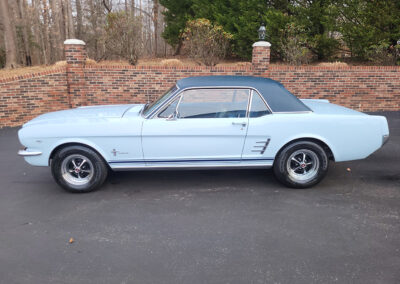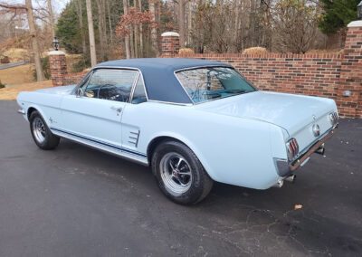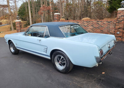 Very clean Mustang Coupe, straight solid rust-free body and floors, painted in the original Arcadian Blue, 289 V8 engine with C4 automatic transmission, 8-inch 2.80 gears, power steering, dual exhaust with GT tips, styled steel wheels, all stock interior with factory console, Retro Radio, car is fully serviced and runs and drives out great.