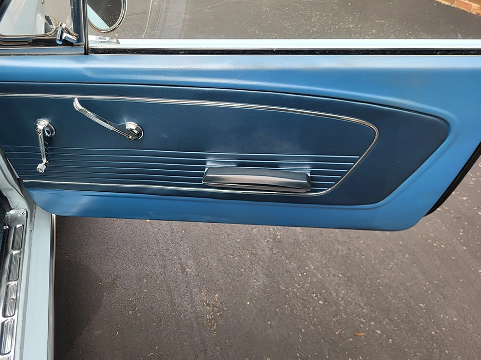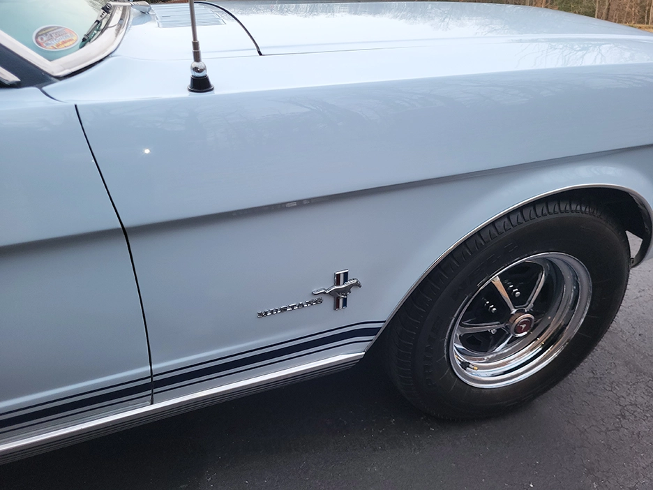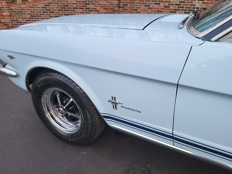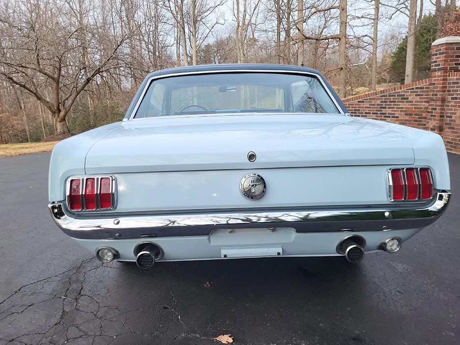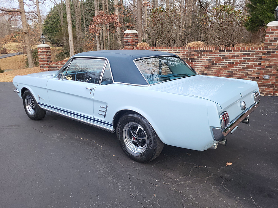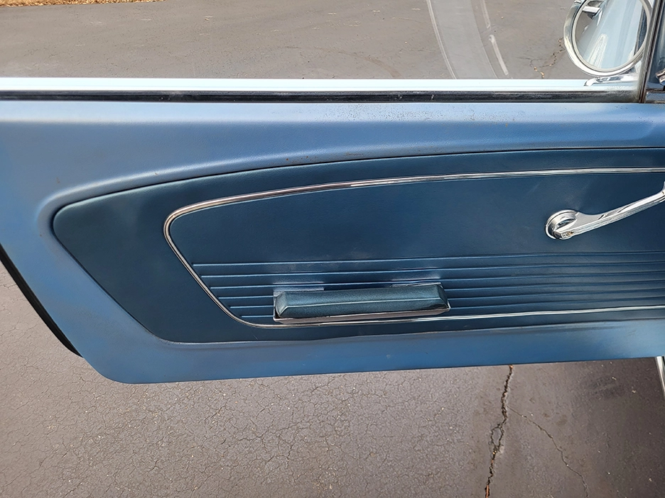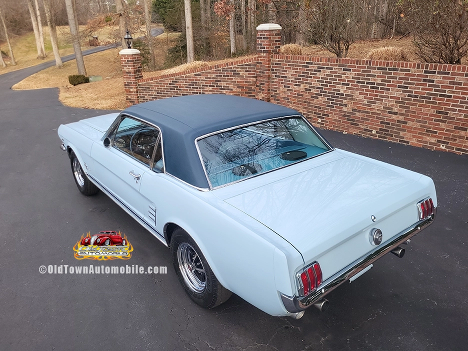 Very clean Mustang Coupe, straight solid rust-free body and floors, painted in the original Arcadian Blue, 289 V8 engine with C4 automatic transmission, 8-inch 2.80 gears, power steering, dual exhaust with GT tips, styled steel wheels, all stock interior with factory console, Retro Radio, car is fully serviced and runs and drives out great.