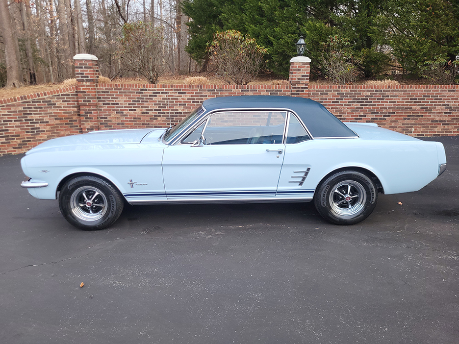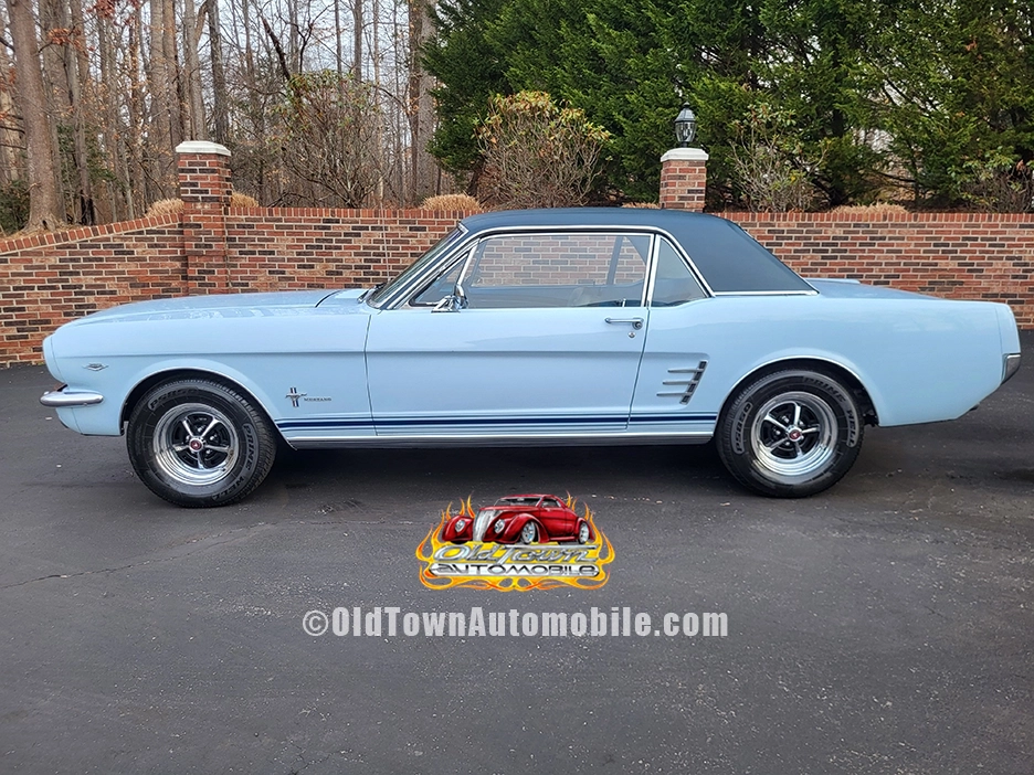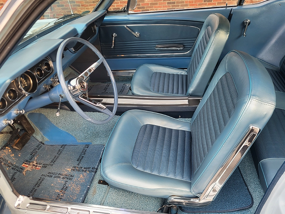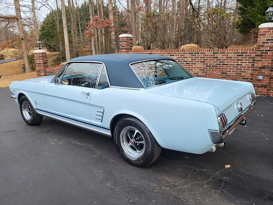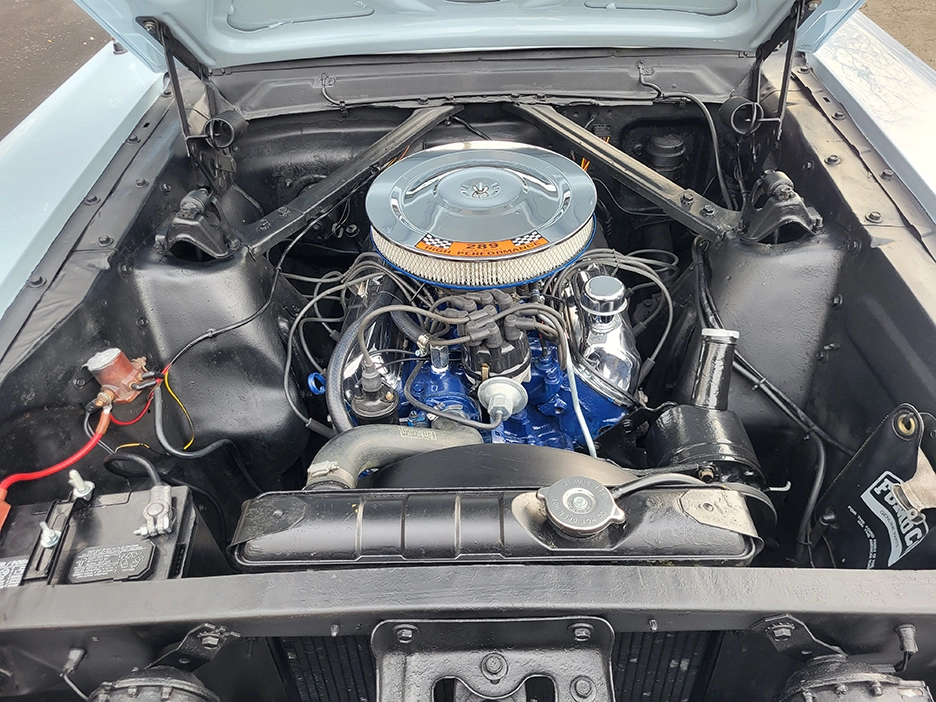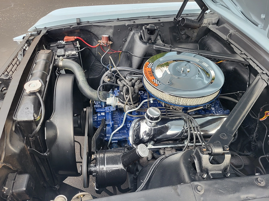 Very clean Mustang Coupe, straight solid rust-free body and floors, painted in the original Arcadian Blue, 289 V8 engine with C4 automatic transmission, 8-inch 2.80 gears, power steering, dual exhaust with GT tips, styled steel wheels, all stock interior with factory console, Retro Radio, car is fully serviced and runs and drives out great.