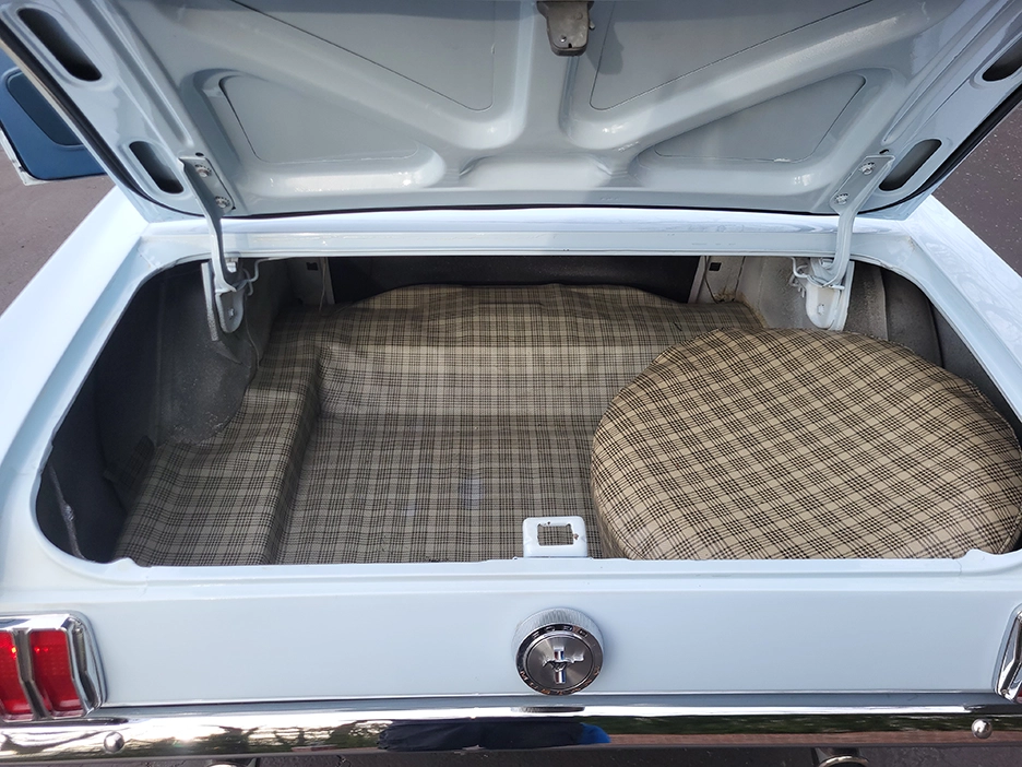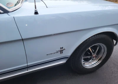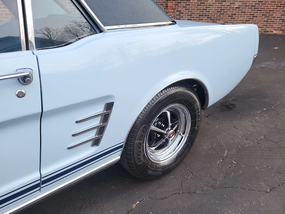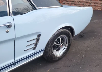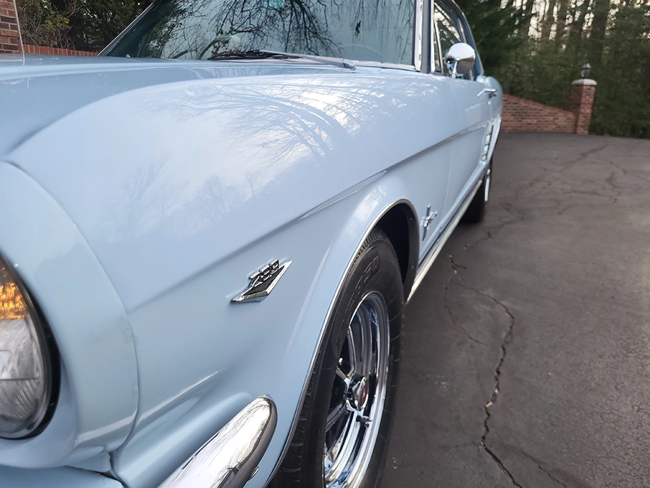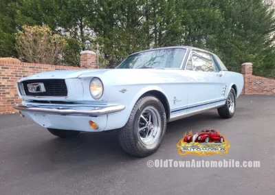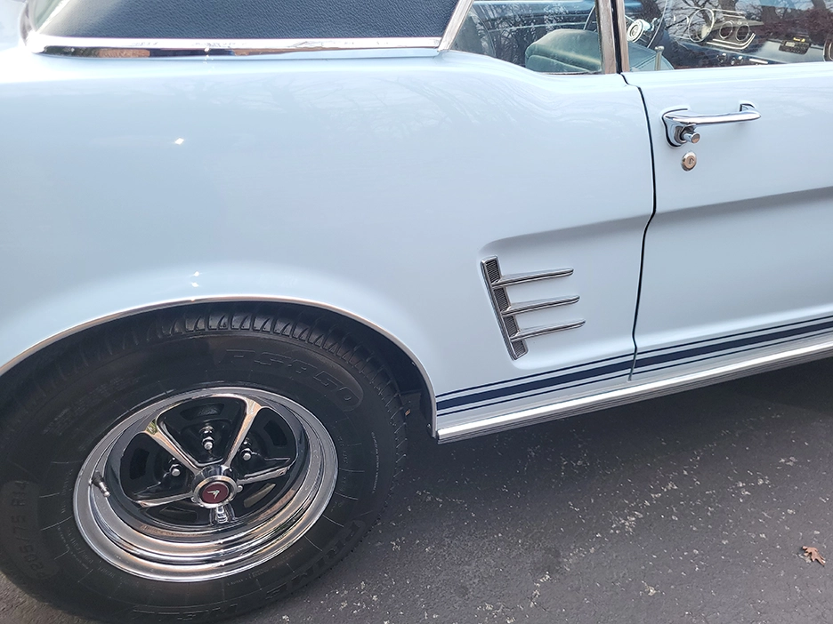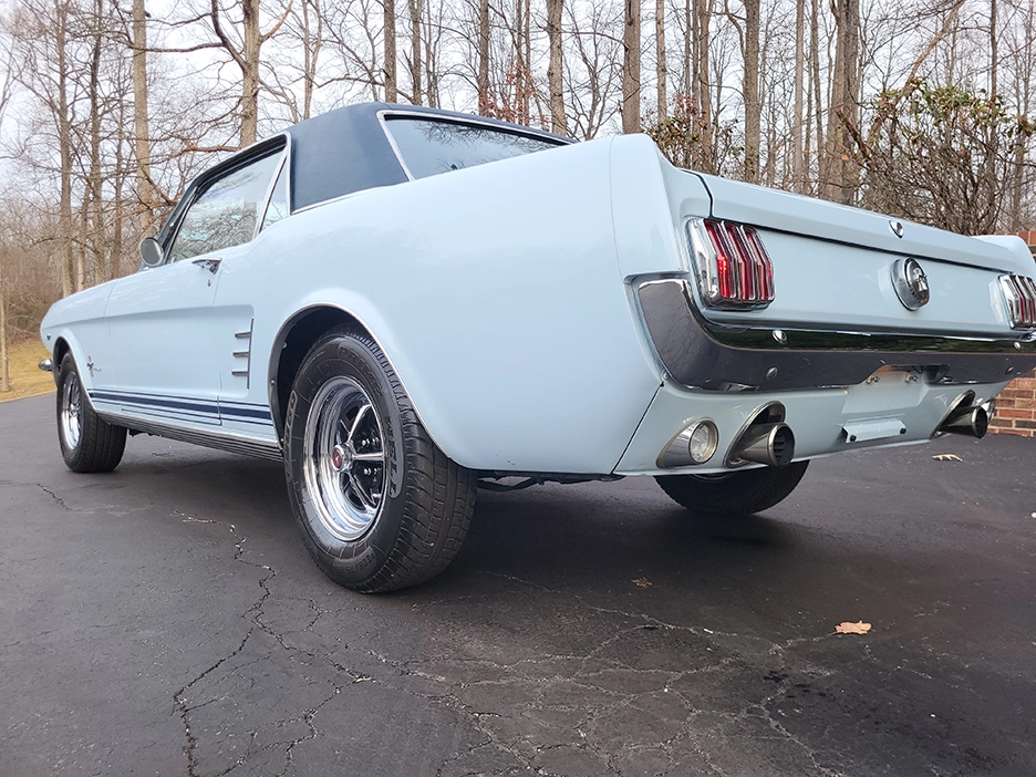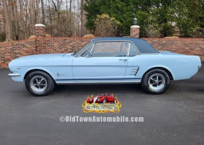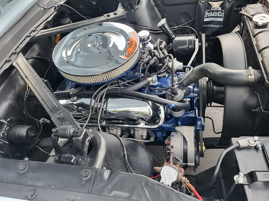 Very clean Mustang Coupe, straight solid rust-free body and floors, painted in the original Arcadian Blue, 289 V8 engine with C4 automatic transmission, 8-inch 2.80 gears, power steering, dual exhaust with GT tips, styled steel wheels, all stock interior with factory console, Retro Radio, car is fully serviced and runs and drives out great.