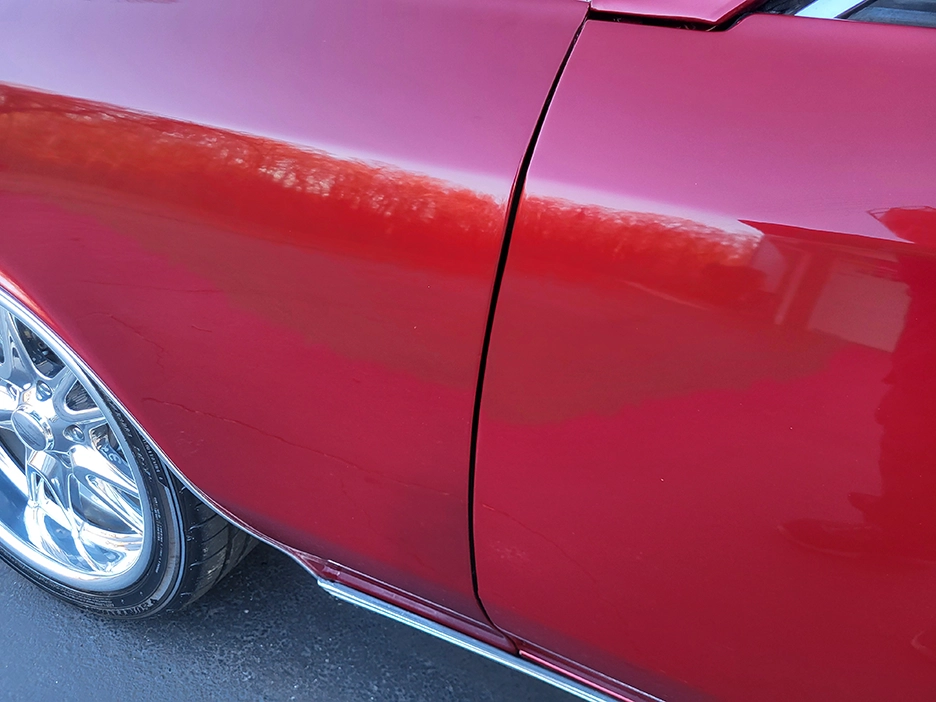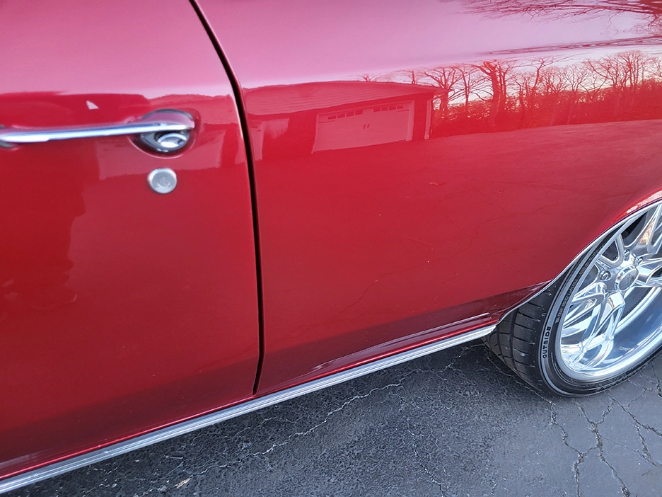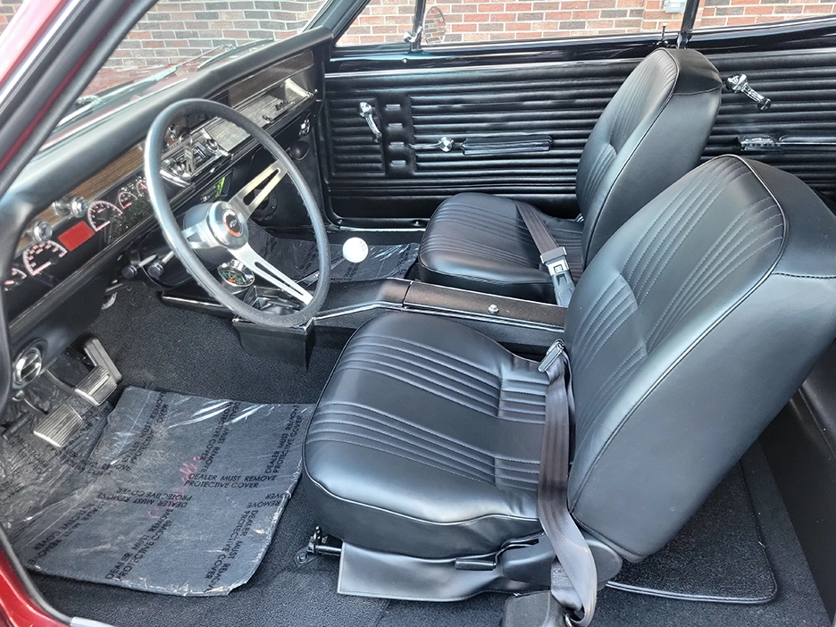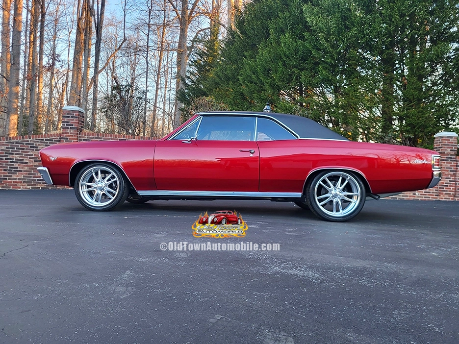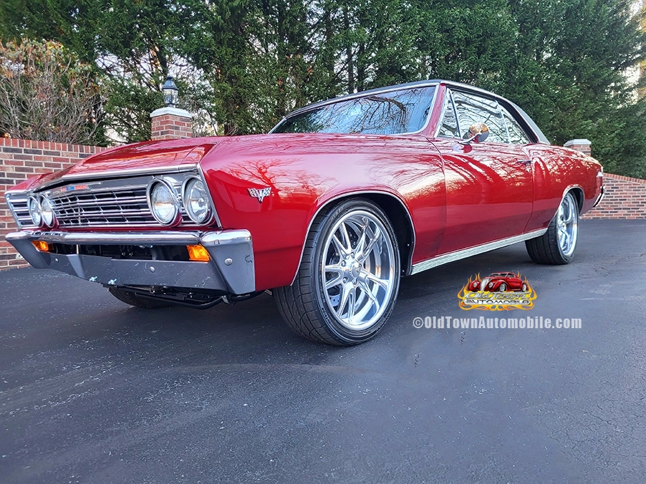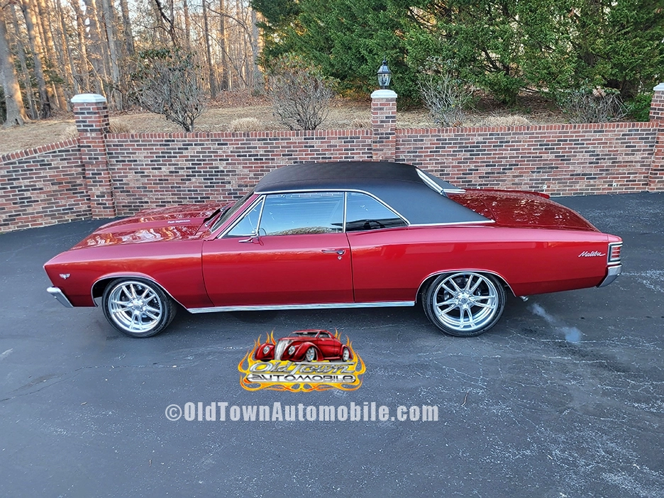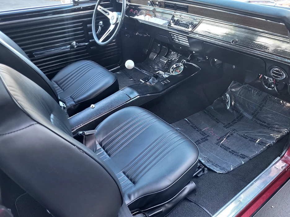 Full complete frame-off nut and bolt restoration, rust-free laser straight body and floor pans, slick Cranberry Red Metallic paint, all new chrome, stainless, glass, etc.