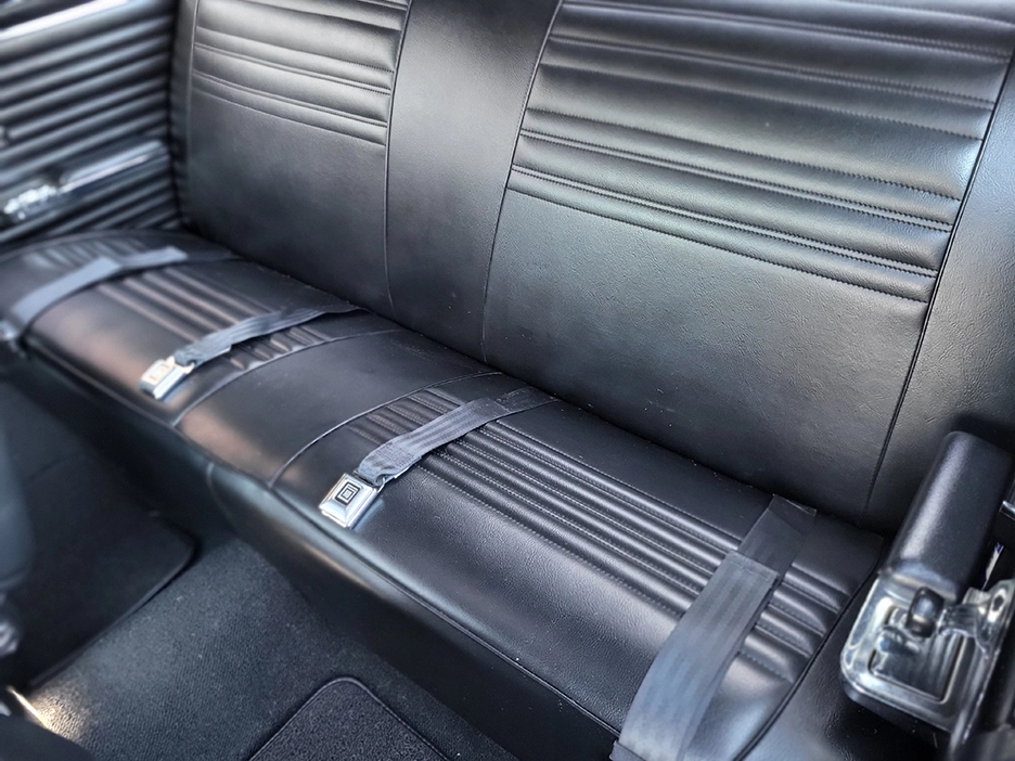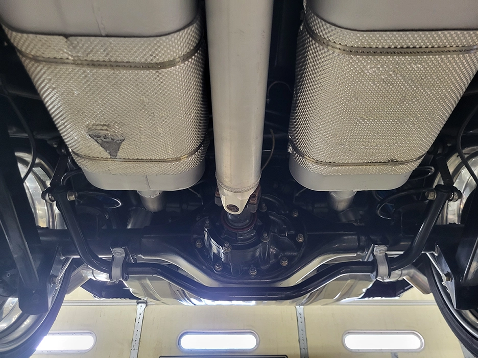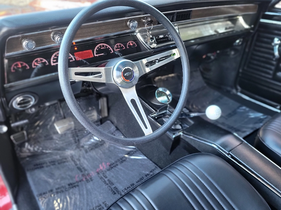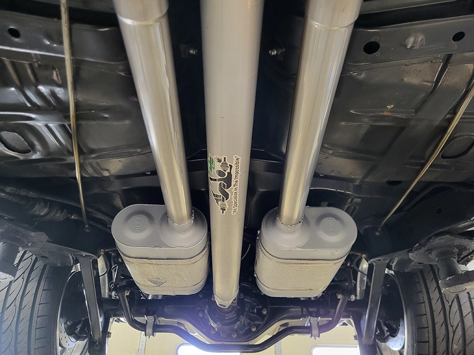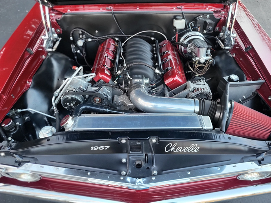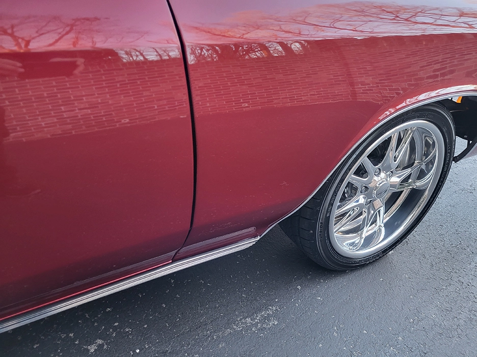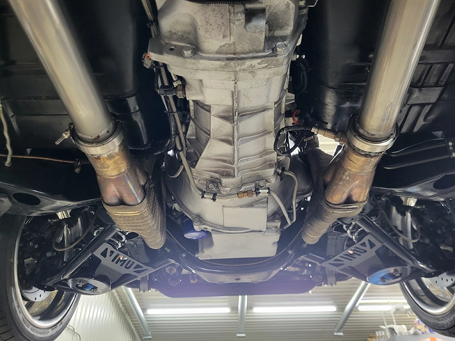 6.2 liter LS3 engine with 6-speed Tremec manual transmission, Moser 9-inch rear with 35splined axles, 3:89 gears, complete UMI suspension including front and rear tubular A-arms and adjustable shocks, Hellwig frame reinforcment kit with boxed site rails, fully powder-coated, driveshaft with front CJ joint, Wilwood power 13″ brakes, 4-wheel disc brakes.