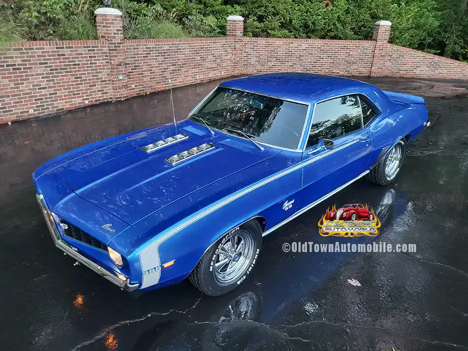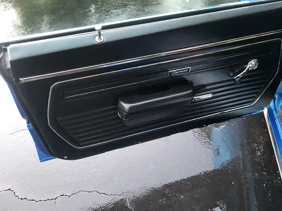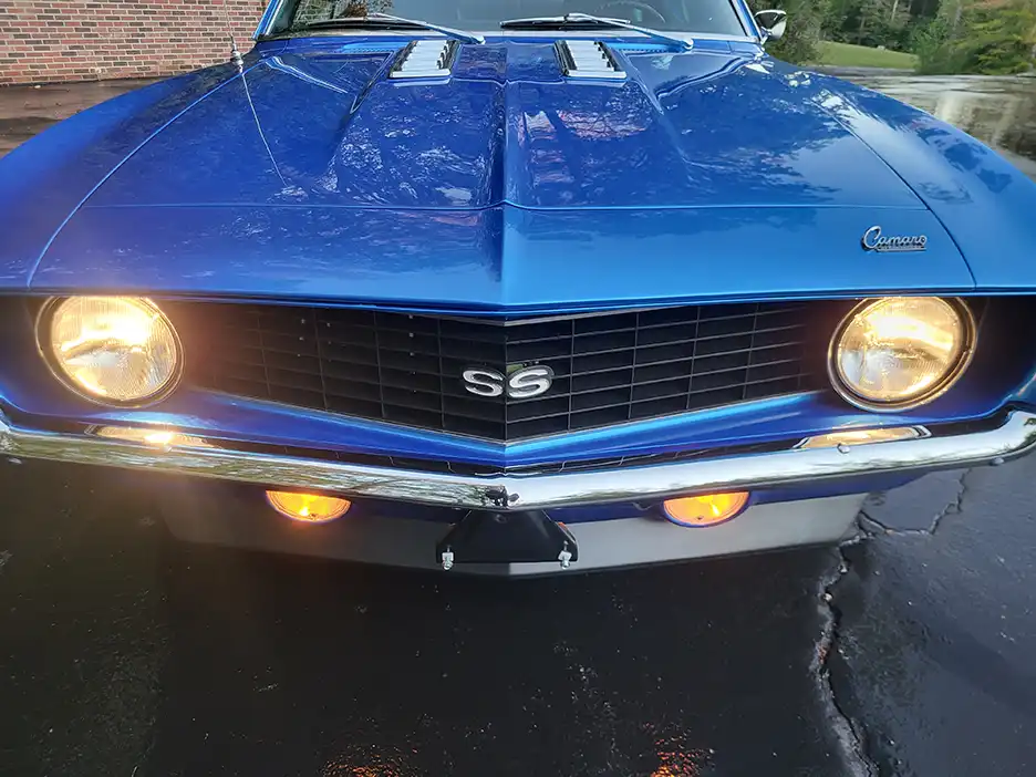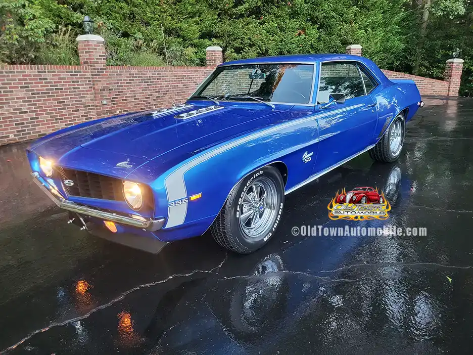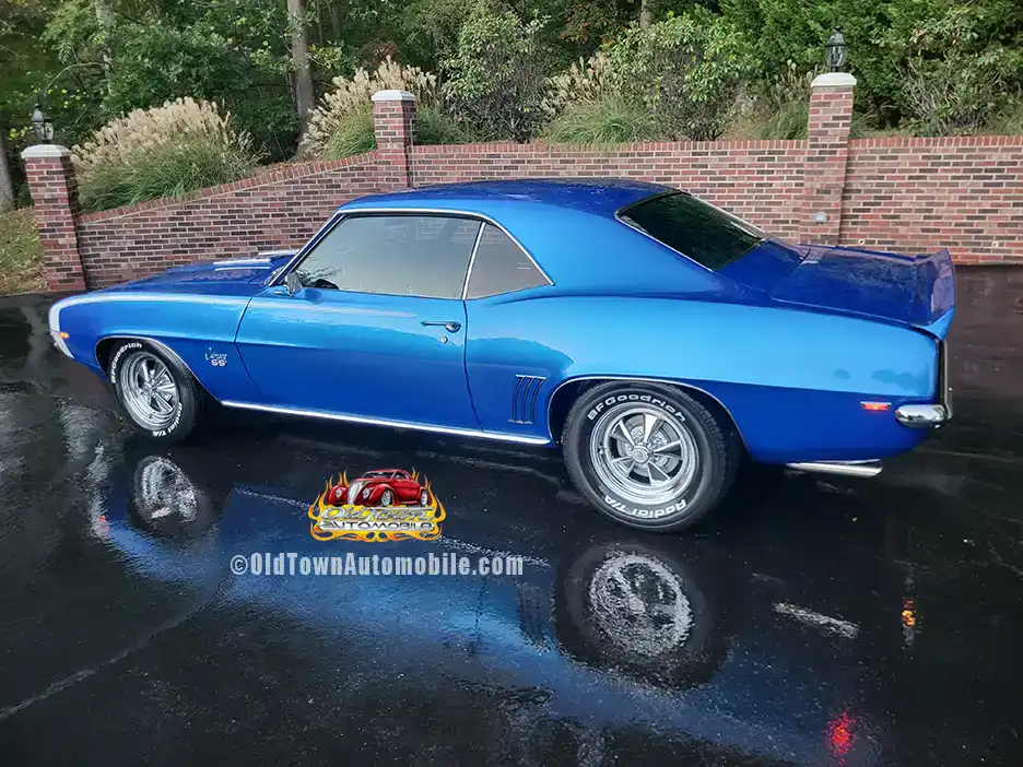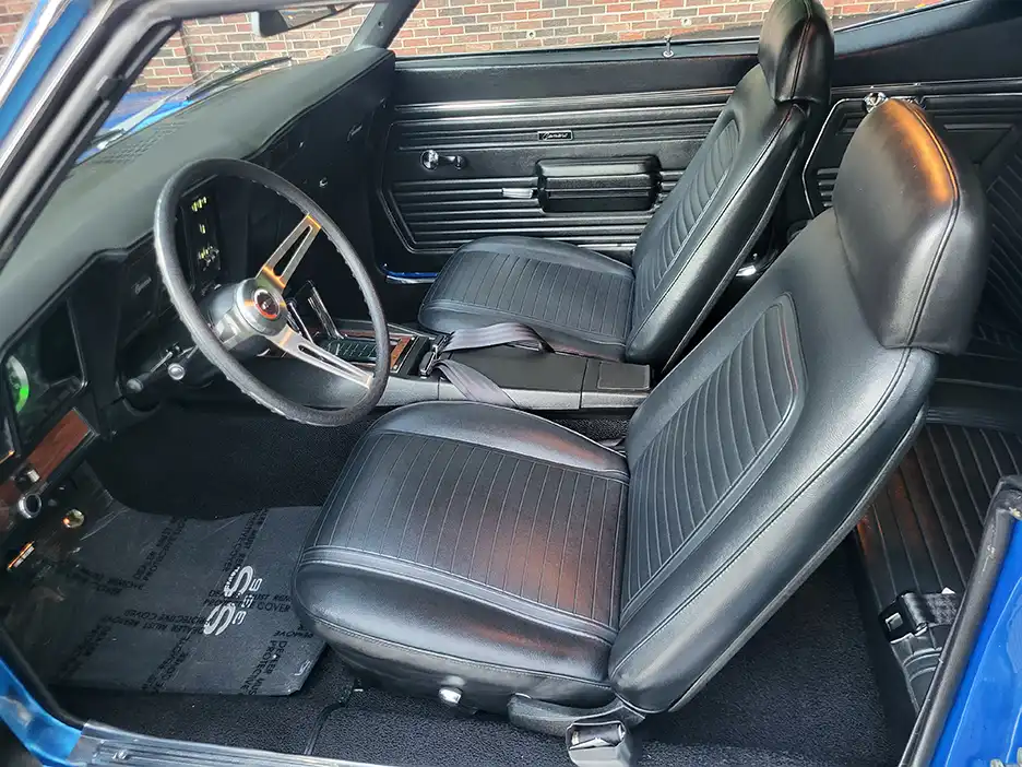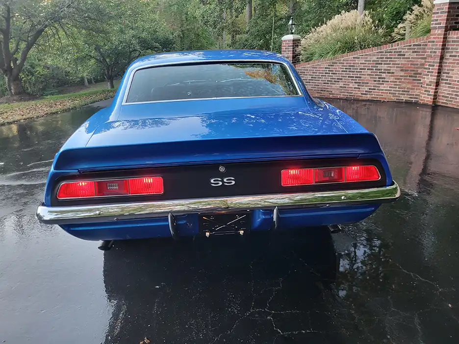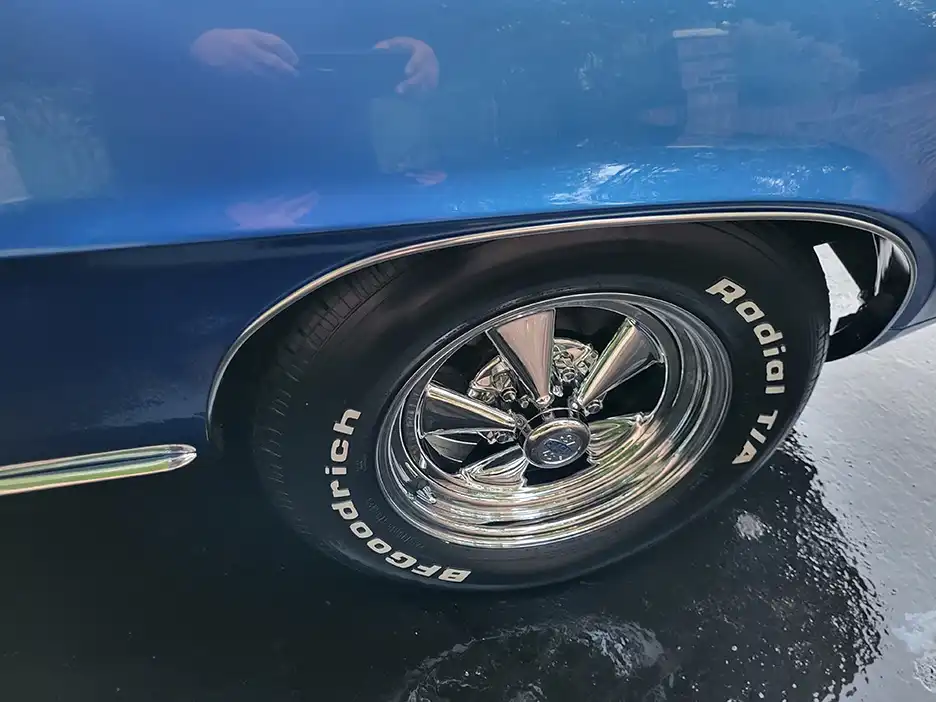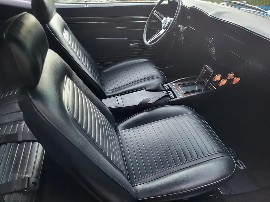Fresh rotisserie restoration, straight, rust-free body and floors, show quality custom Lemans Blue paint, all new chrome and stainless, NOM 396/350hp engine, turbo 350 automatic transmission, 12 bolt 3.55 gear rear, power steering, power disc brakes, headers with dual exhaust and Flowmaster mufflers, new Cragar wheels and tires, all new stock interior, bucket seats, console, factory tachometer, gauges, tilt wheel, Retro Radio, Vintage heat and air conditioning, car runs out great.