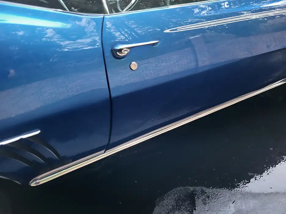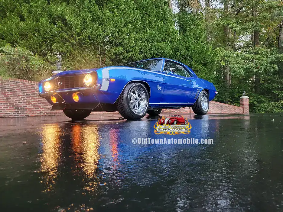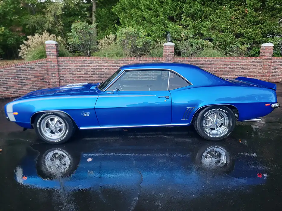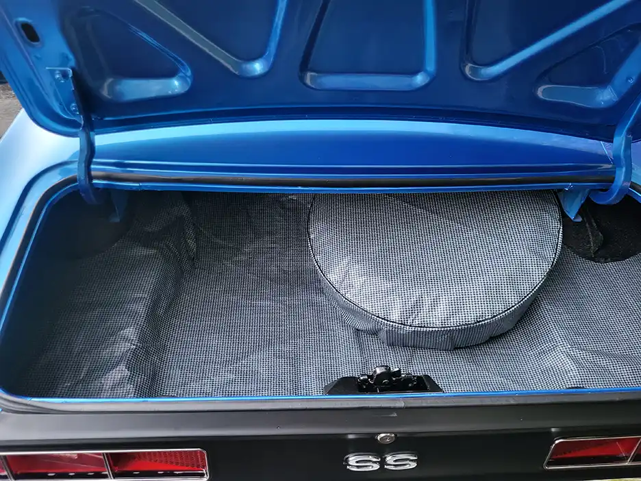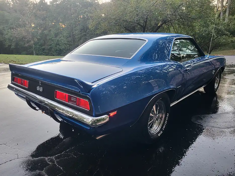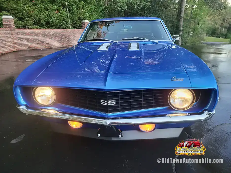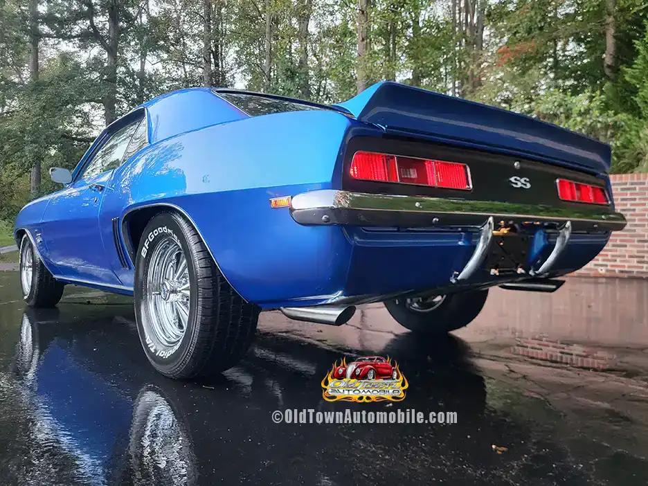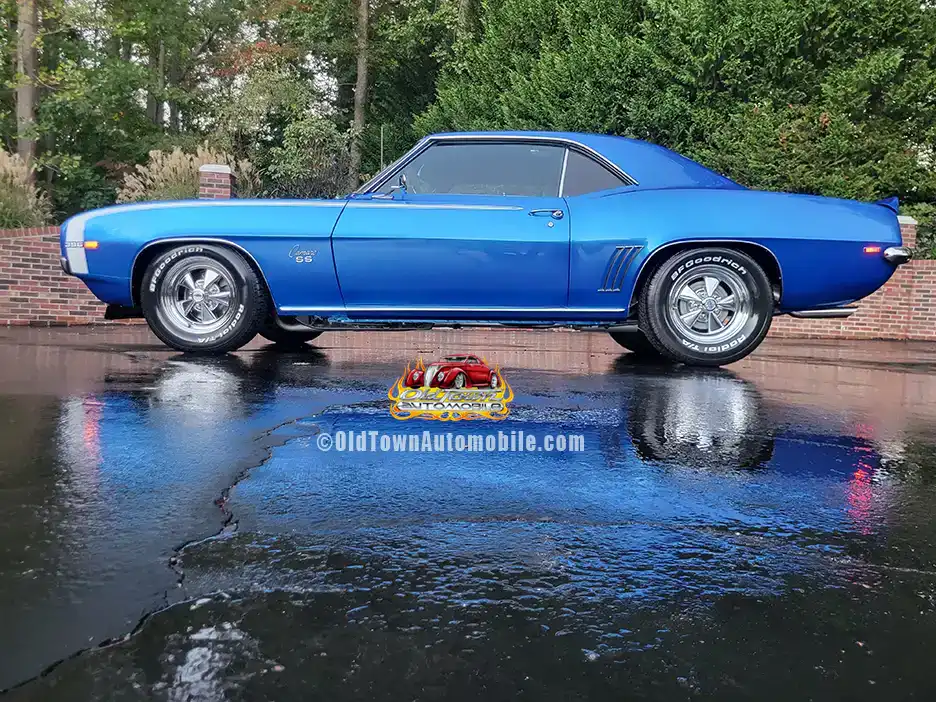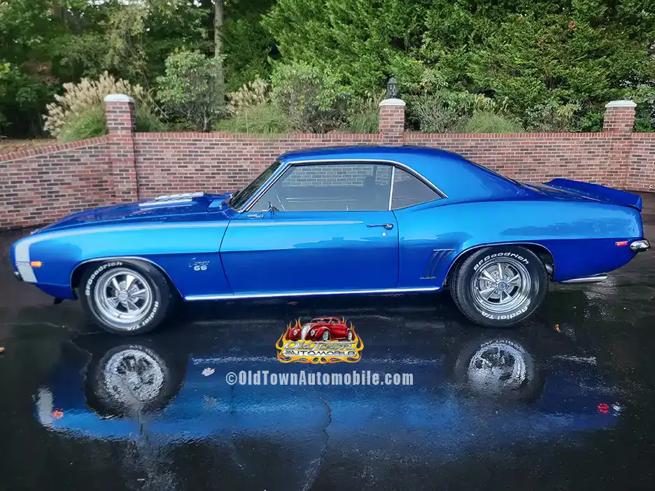 Fresh rotisserie restoration, straight, rust-free body and floors, show quality custom Lemans Blue paint, all new chrome and stainless, NOM 396/350hp engine, turbo 350 automatic transmission, 12 bolt 3.55 gear rear, power steering, power disc brakes, headers with dual exhaust and Flowmaster mufflers, new Cragar wheels and tires, all new stock interior, bucket seats, console, factory tachometer, gauges, tilt wheel, Retro Radio, Vintage heat and air conditioning, car runs out great.