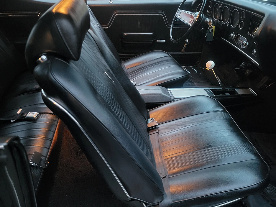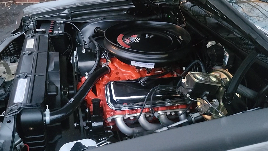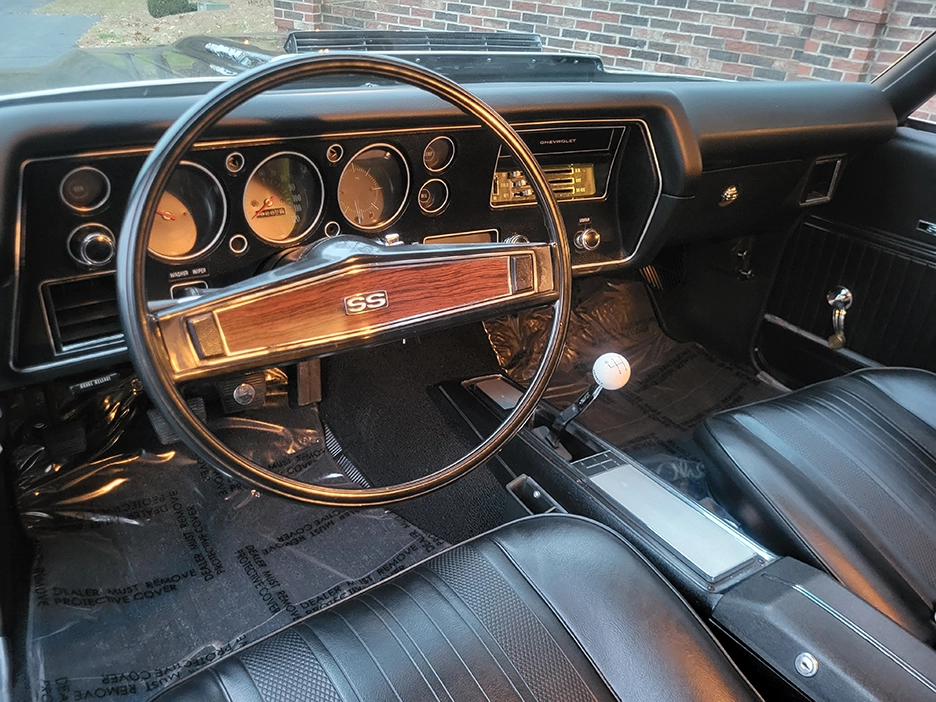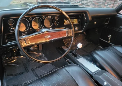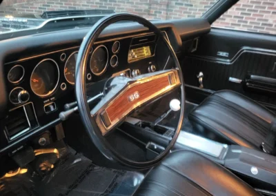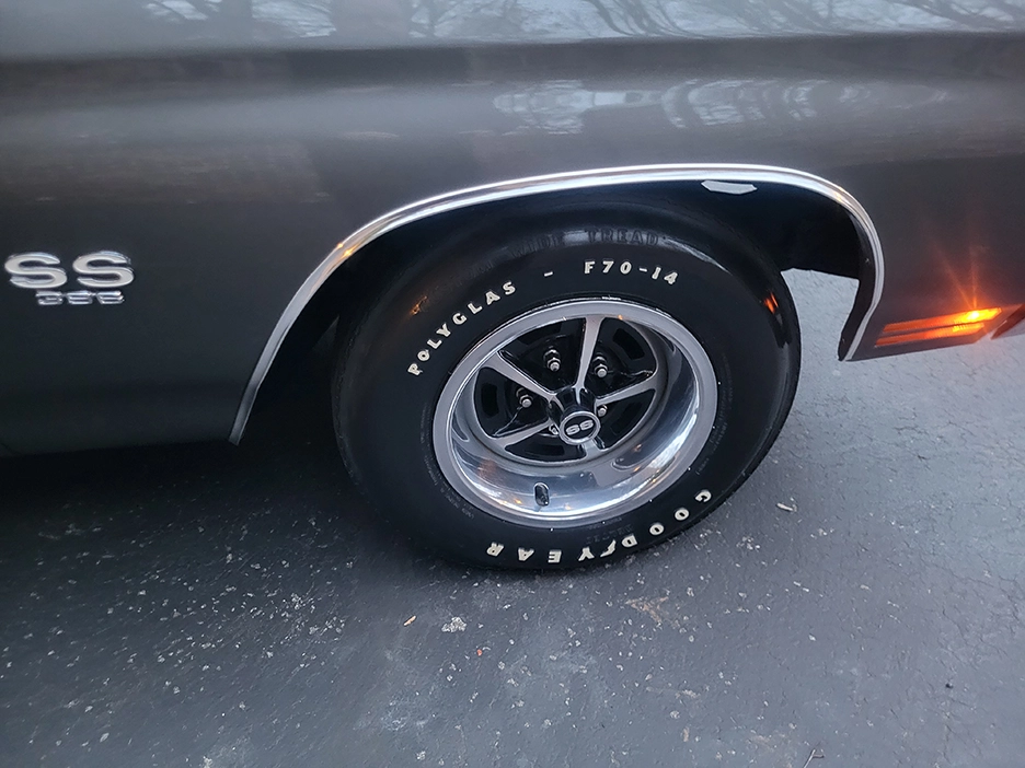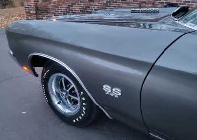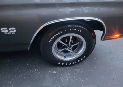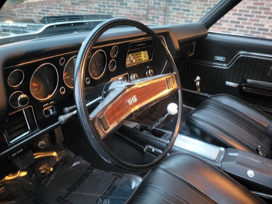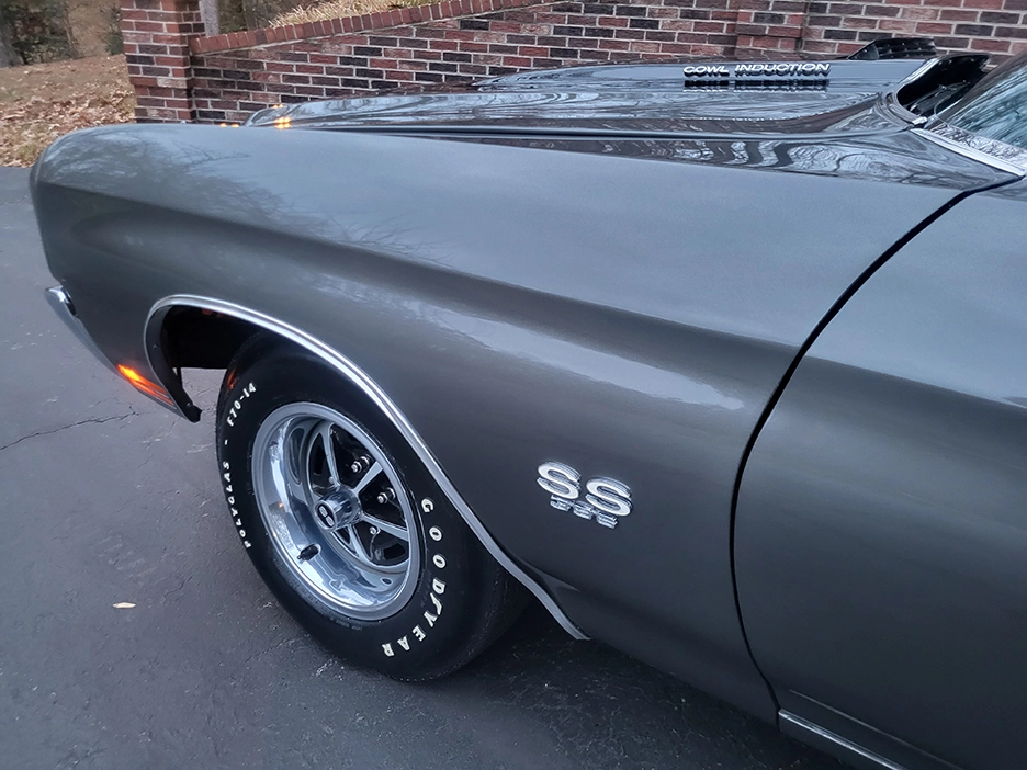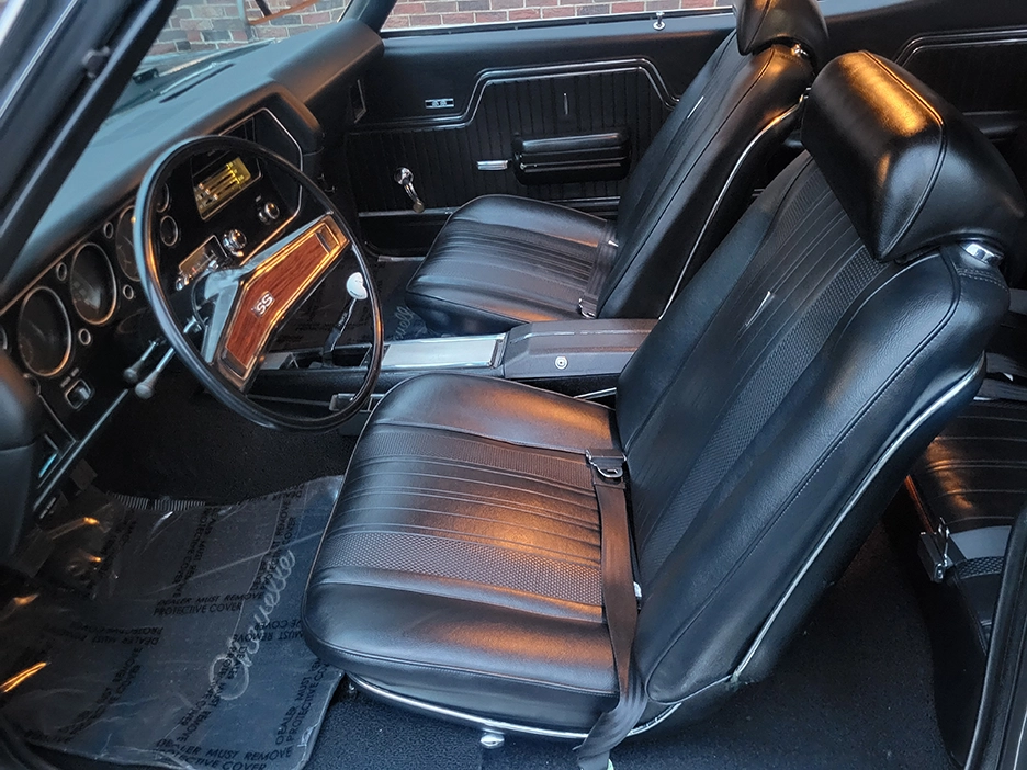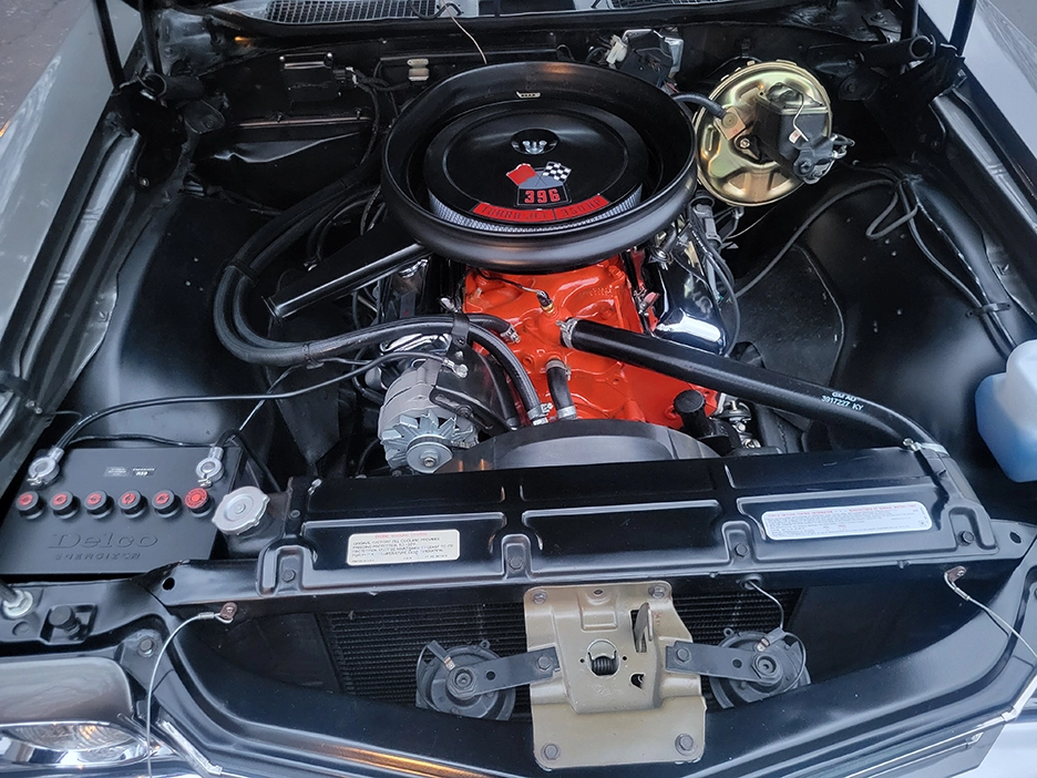Restored car with build sheet and numbers matching drivetrain, straight rust-free body and floors, nice Shadow Gray paint, working cowl induction hood, #s matching 396/350 hp engine with Holley Sniper fuel injection, #s matching M21 4-speed manual transmission and 12 bolt 3:31 positraction rear, F41 suspension, Quick Ratio power steering, power disc brakes, Magnum 500 styled steel wheels with Goodyear Polyglas tires, all stock interior with bucket seats, console, tilt wheel, push button AM radio, Hurst Competition Plus shifter. Very clean, fully serviced car.