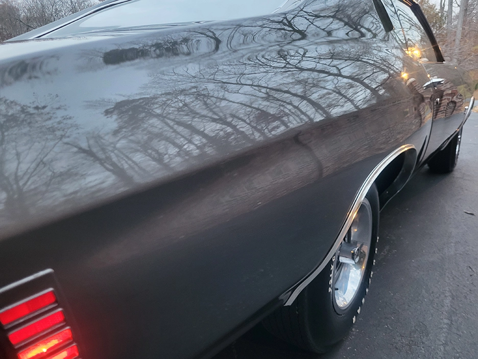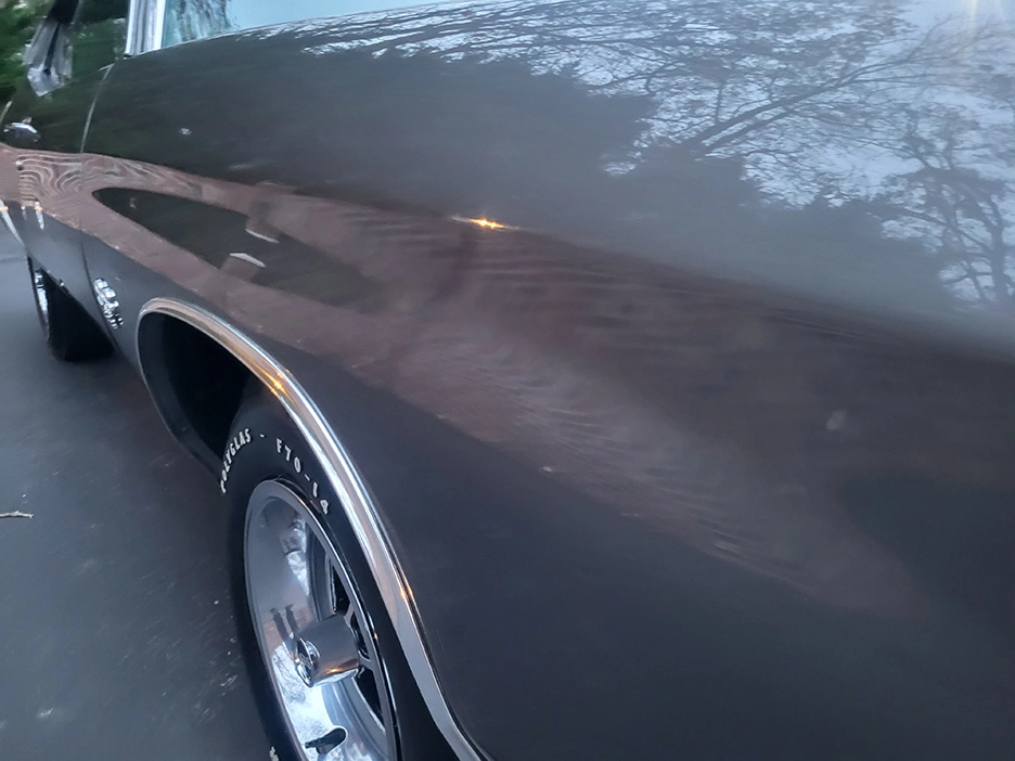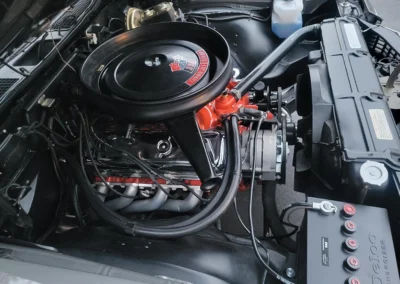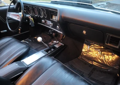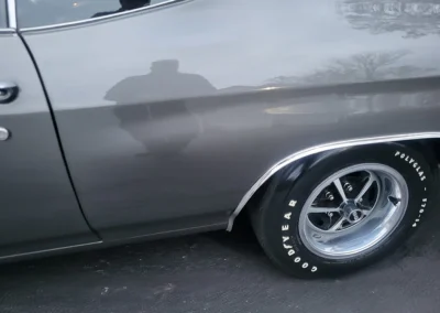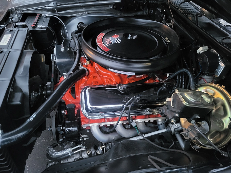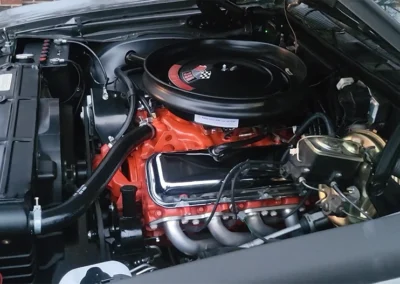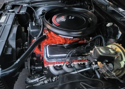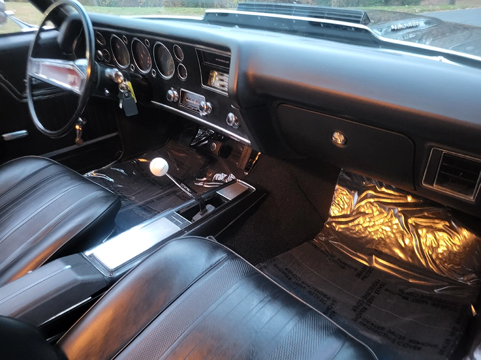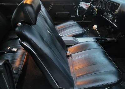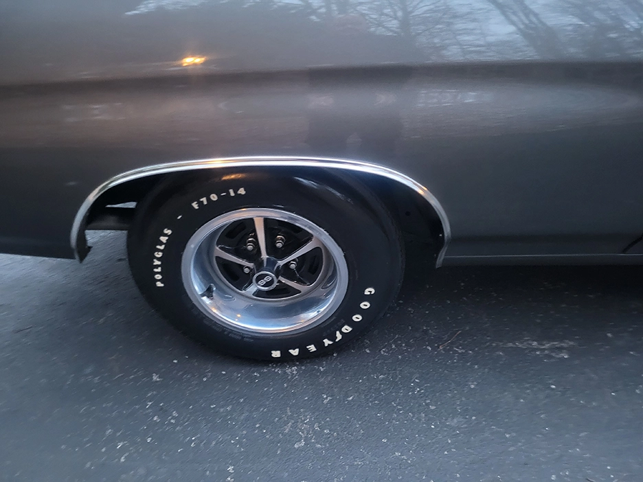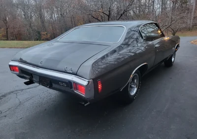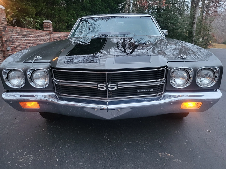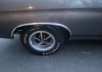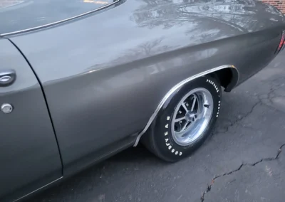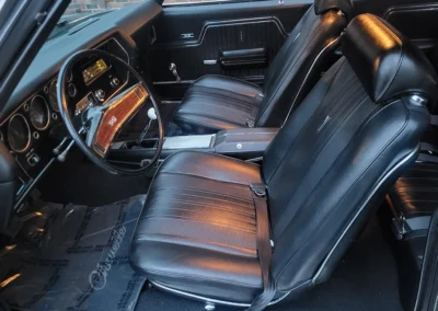 Restored car with build sheet and numbers matching drivetrain, straight rust-free body and floors, nice Shadow Gray paint, working cowl induction hood, #s matching 396/350 hp engine with Holley Sniper fuel injection, #s matching M21 4-speed manual transmission and 12 bolt 3:31 positraction rear, F41 suspension, Quick Ratio power steering, power disc brakes, Magnum 500 styled steel wheels with Goodyear Polyglas tires, all stock interior with bucket seats, console, tilt wheel, push button AM radio, Hurst Competition Plus shifter. Very clean, fully serviced car.