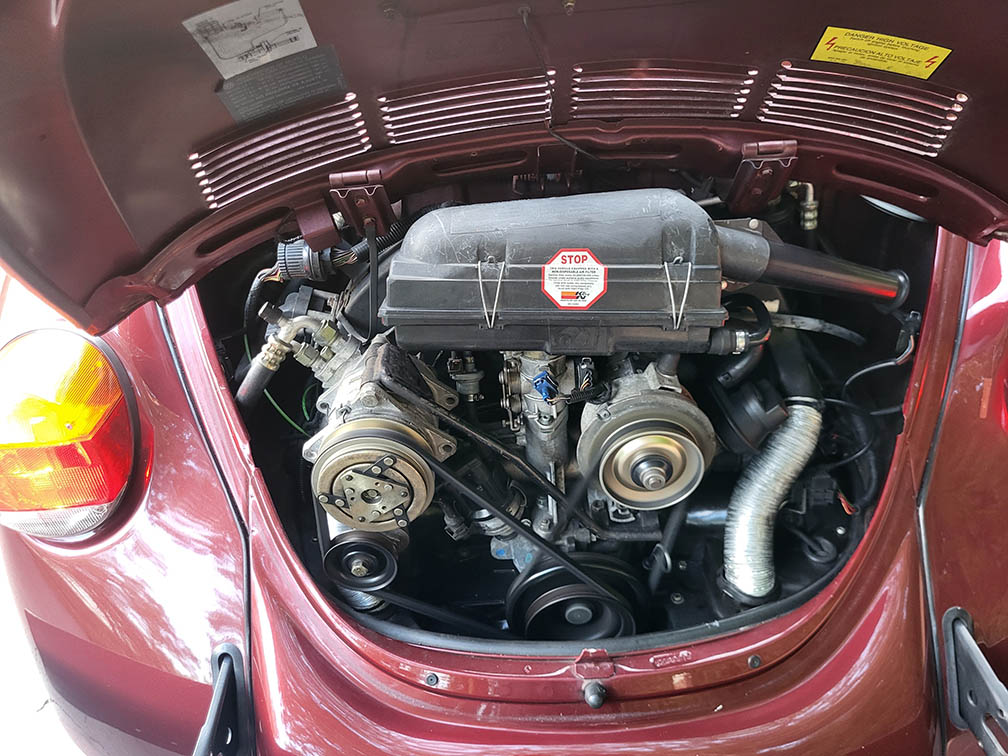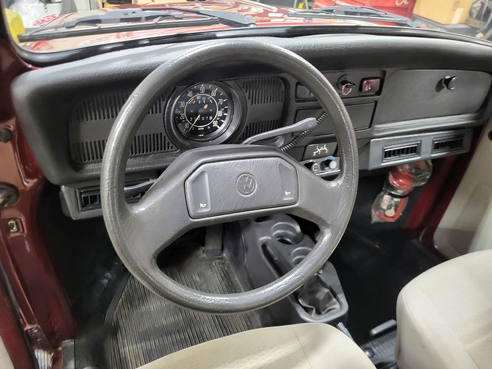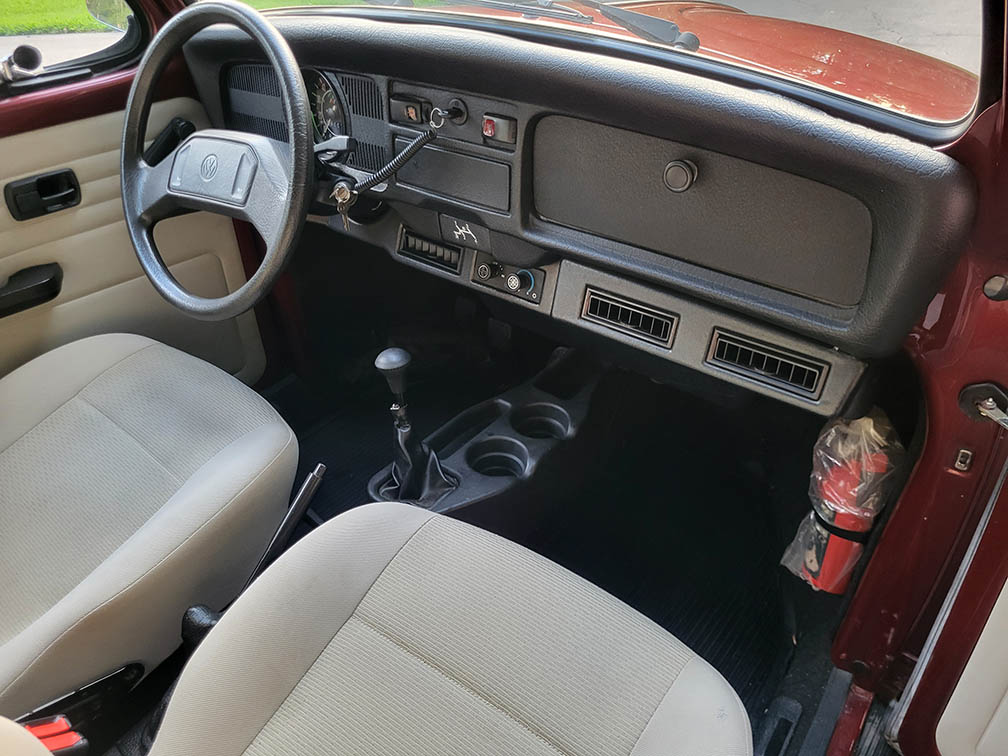 This Vocho Beetle was made in Mexico with all the modern amenities – 1600 cc dual port engine with electronic fuel injection and ignition system, disc brakes, factory cold air conditioning. This is a low mileage, garage-kept Bug with absolutely no rust, well maintained and cared for, fully serviced. Use as an everyday driver or cruise in shows.